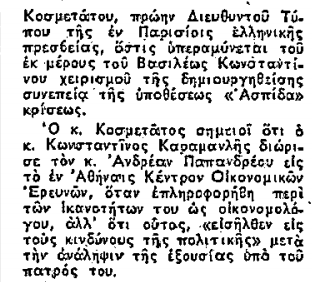 Ο ΒΑΣΙΛΕΥΣ ΚΩΝΣΤΑΝΤΙΝΟΣ ΔΙΕΣΩΣΕ ΤΗΝ ΔΗΜΟΚΡΑΤΙΑ ΤΟΝ ΙΟΥΛΙΟ 1965 ΔΗΛΩΝΕΙ Ο κ. ΚΟΣΜΕΤΑΤΟΣ .